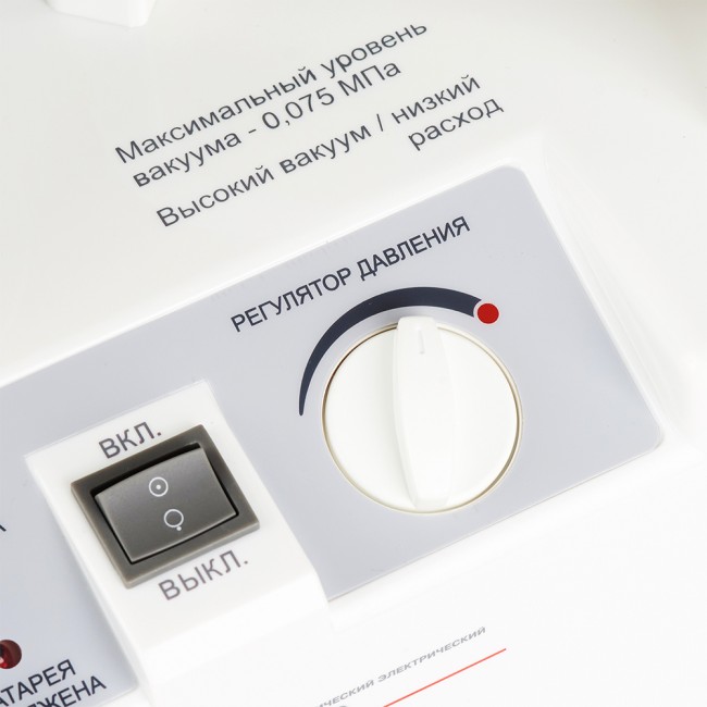 Отсасыватель обеспечивает высокое отрицательное давление. Отсасыватель может работать от бортовой сети, от встроенной АКБ, от сети переменного тока. Отсасыватель оснащен специальным кронштейном для подвешивания на горизонтальной и вертикальной поверхности.