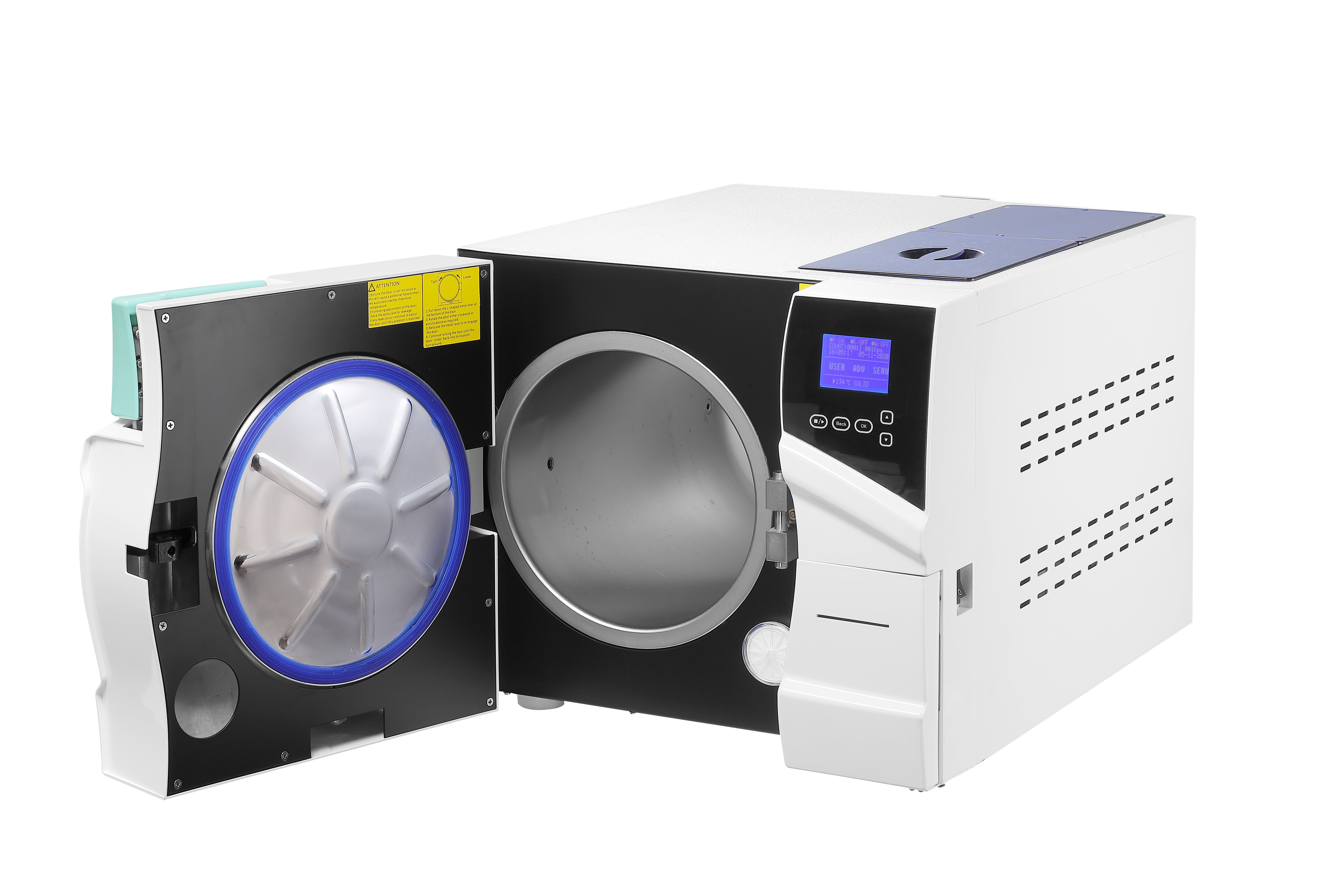 Дверца автоклава оснащена механическим замком с электрическим контролем и уплотнительным кольцом, которые прошли все испытания и выдерживают давление до 3 кг.