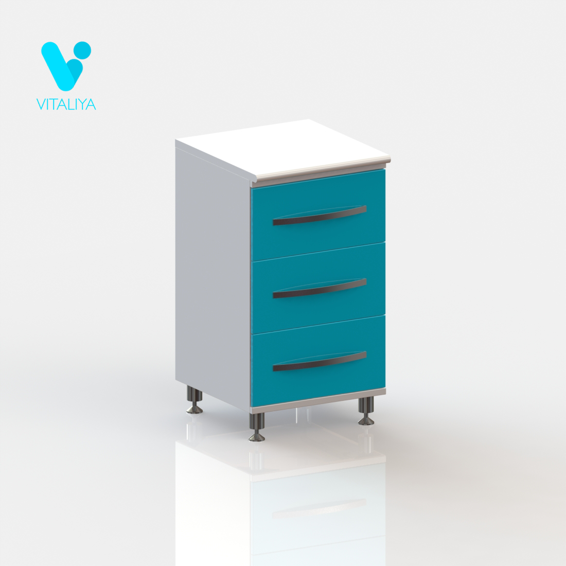 - Тумба изготовлена на хромированных ножках;