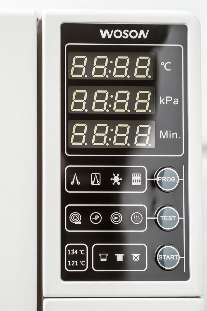 • Стандартный В-класс стерилизации с трехкратным вакуумированием и сушкой, остаточная температура простерилизованного инструмента менее 0,2%.