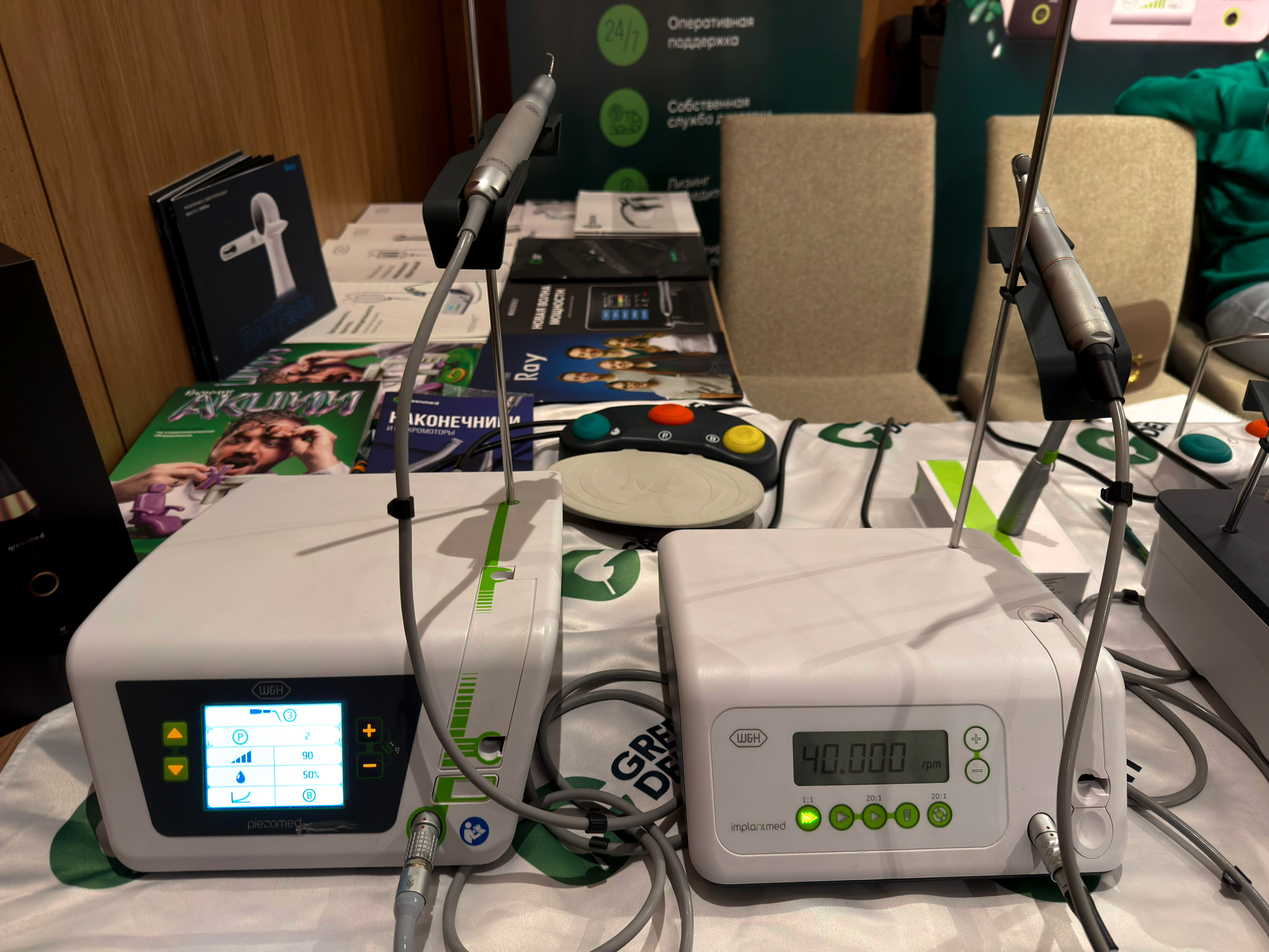 Его и многое другое инновационное стоматологическое оборудование на курс привезли специалисты компании GREEN DENT. Мы были рады встречи с каждым специалистом, спасибо за ваш интерес к нашей продукции, представленной на стенде: зеркала, бинокуляры, Piezomed, Implantmed, Piezomed plus и лазеры Medency.